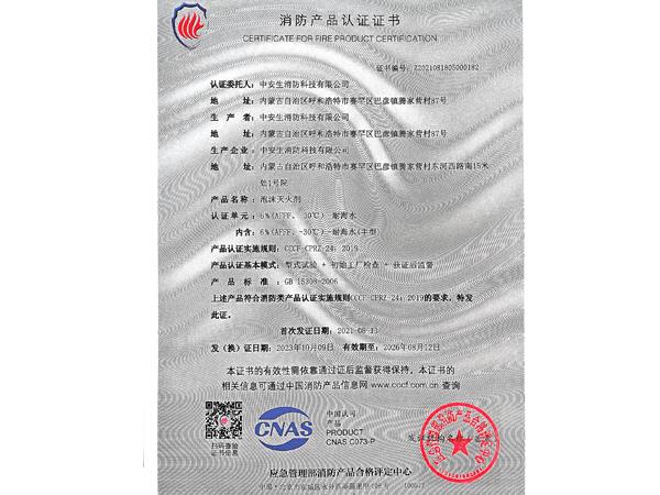 A類泡沫滅火劑MJABP消防產(chǎn)品認(rèn)證...