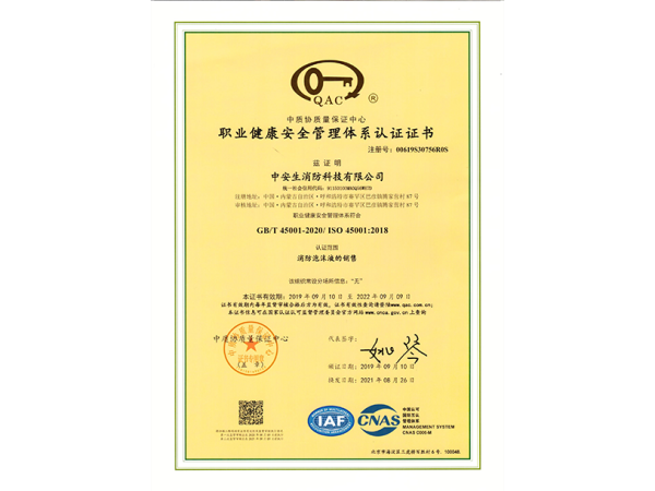 職業(yè)健康安全管理體系認(rèn)證證書(shū)