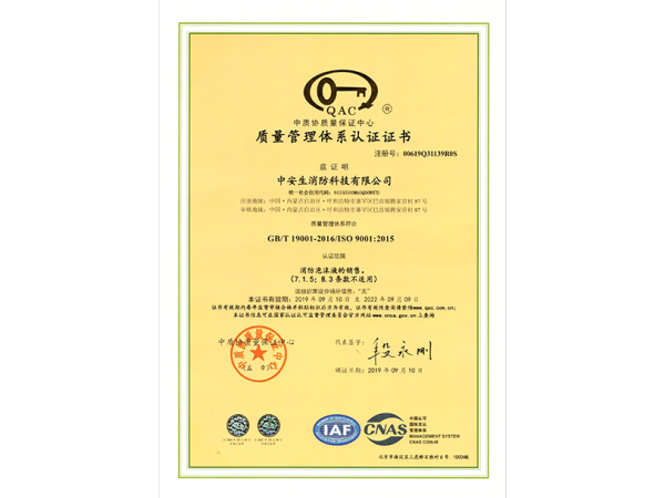 質(zhì)量管理體系認(rèn)證證書(shū)