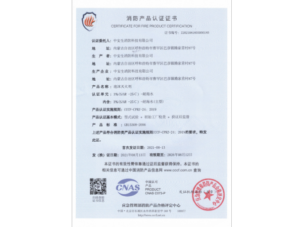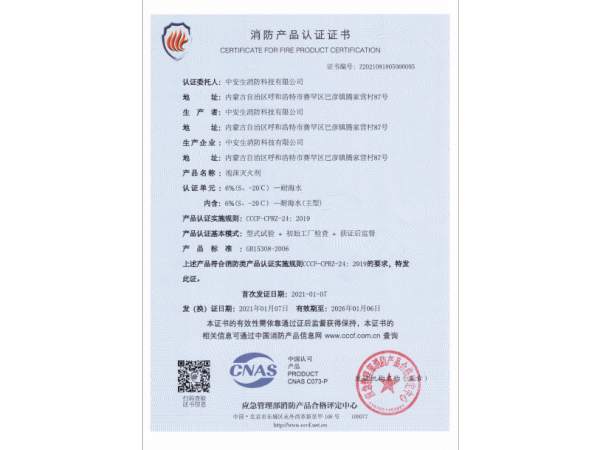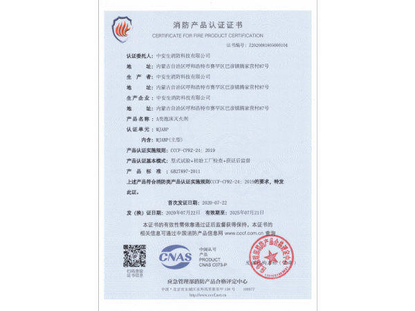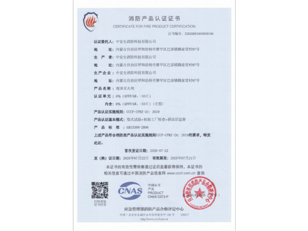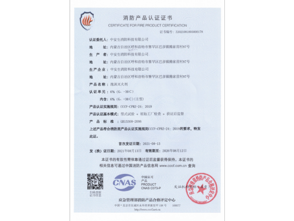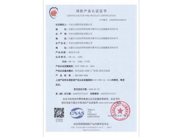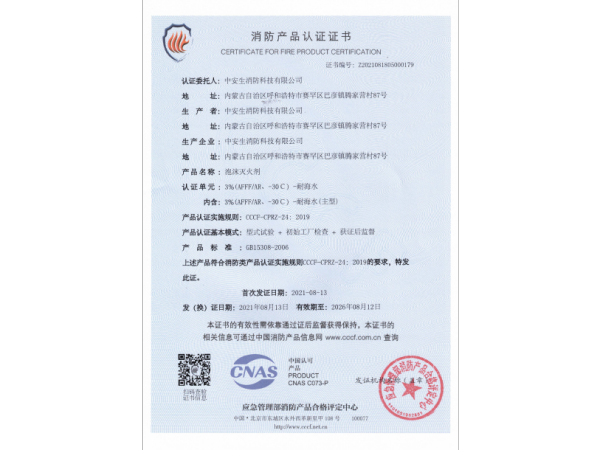消防產(chǎn)品認證證書